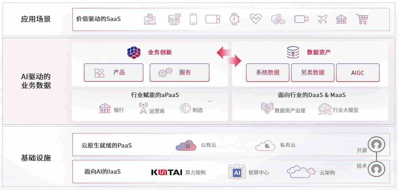 数字时代,,围绕企业数字化转型的关键要素,,,,z6mg人生就是博数码开创性的提出数云融合战略和技术体系框架,,,,着力在云原生、、、数字原生、、、、AI原生和信创产业上架构产品和服务能力,,,,为处在不同数字化转型阶段的快消零售、、、、汽车、、金融、、、医疗、、、政企、、、教育、、、、运营商等行业客户提供泛在的敏捷IT能力和融合的数据驱动能力,,,,构建跨界融合创新的数字业务场景和新业务模式,,,助力企业级客户建立面向未来的核心能力和竞争优势,,全面推动社会的数字化、、、智能化转型升级。。。